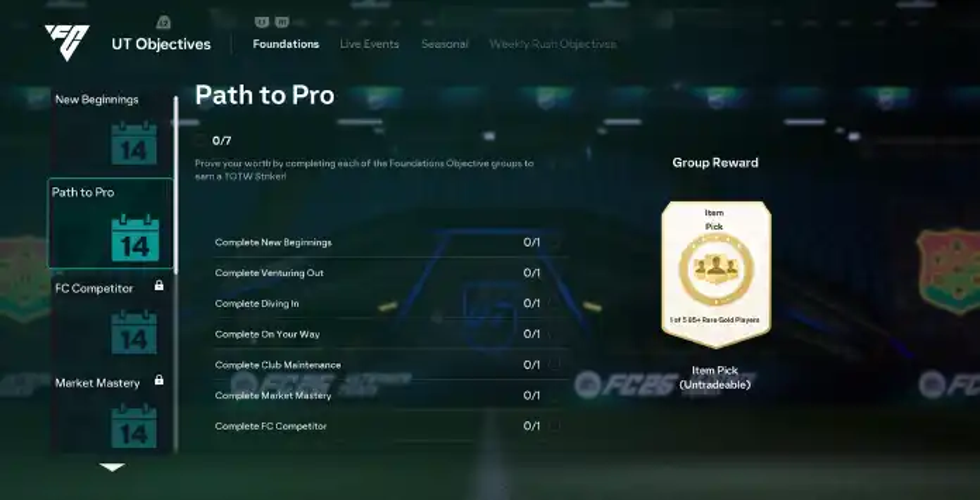 For new Ultimate Team players, FC 26 Foundations Objectives are designed to introduce basic club management tasks.