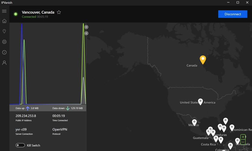 • IPVanish: Known for its speed and simplicity, IPVanish provides a wide selection of Canadian servers suitable for streaming and torrenting. It is also the most affordable monthly subscription on our list.